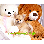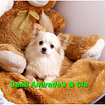 | Tedy- filhotinho macho de chihuahua de pelo longo, branco e dourado.