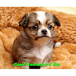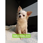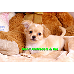 | Jonny- Filhote macho de chihuahua de pelo longo na cor branco e dourado.