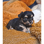 | Sunny- Filhote fêmea de chihuahua de pelo longo na cor Preto , branco e dourado
